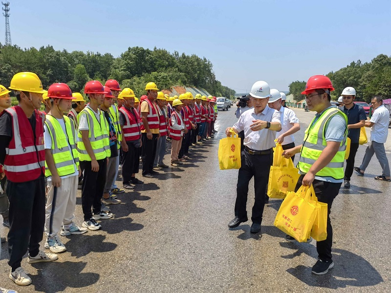 在項(xiàng)目建設(shè)現(xiàn)場(chǎng),朱小兵對(duì)參建各方戰(zhàn)高溫、斗酷暑、勇于奉獻(xiàn)、堅(jiān)守崗位的精神表示贊揚(yáng),向大家的辛勤付出表示感謝,叮囑大家要落實(shí)防暑降溫措施。