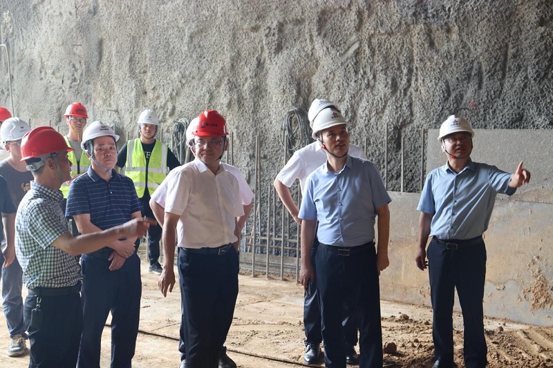 朱忠明一行深入項(xiàng)目施工現(xiàn)場(chǎng),實(shí)地查看了隧道進(jìn)出口、共線段進(jìn)展情況,并就項(xiàng)目建設(shè)過(guò)程中的重難點(diǎn)問(wèn)題與相關(guān)人員深入交流。